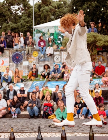 Disciplinas: malabares, lanzamiento de cuchillos, equilibrios en botellas, magia, hulahoop.